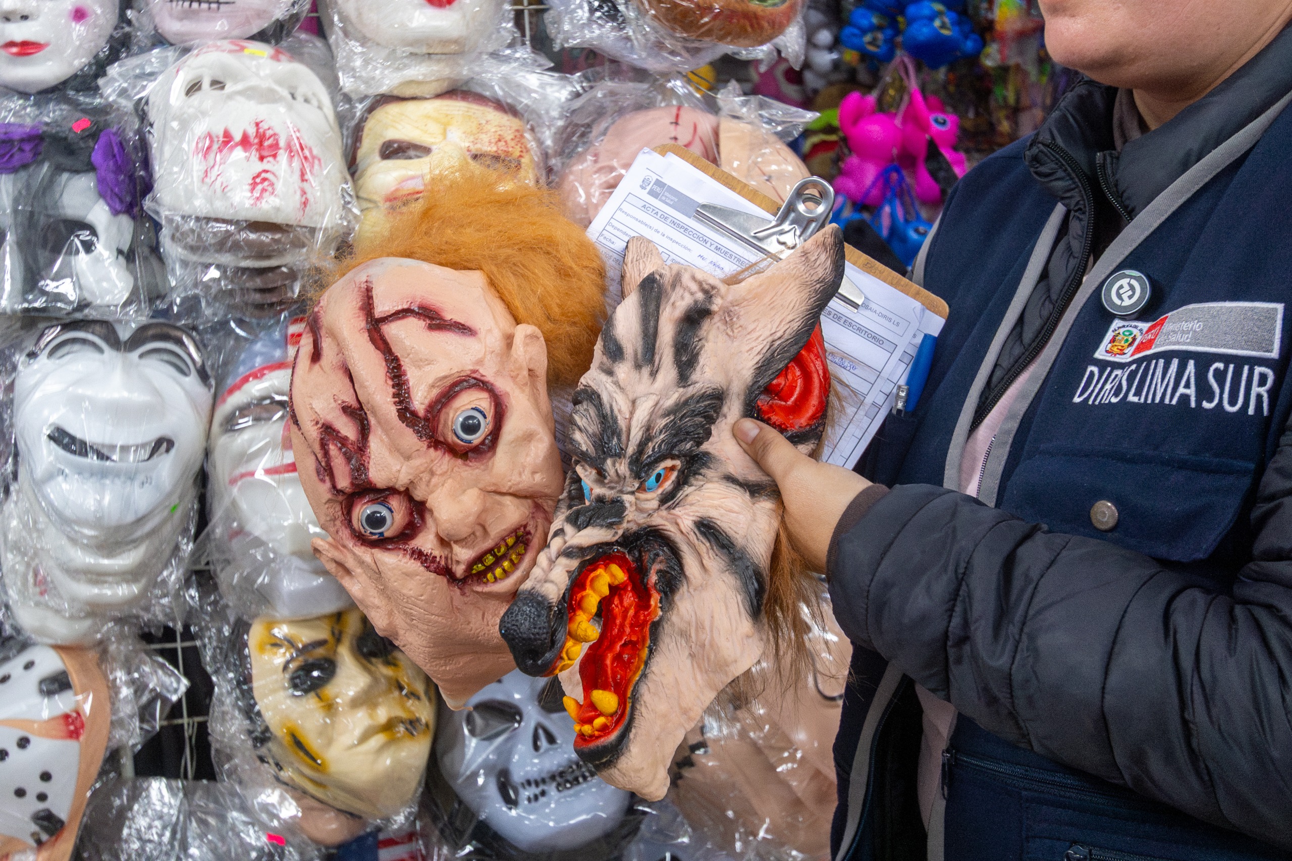 La bióloga Patricia López, del Programa de Inspección Sanitaria del municipio, advirtió sobre los riesgos de estos productos. “Algunas máscaras de jebe con pelo artificial no cuentan con autorización sanitaria y presentan pintura que se desprende fácilmente. Esto puede generar alergias, intoxicaciones e incluso asfixia en los menores, ya que no cumplen con las condiciones adecuadas para su uso”, señaló la especialista.