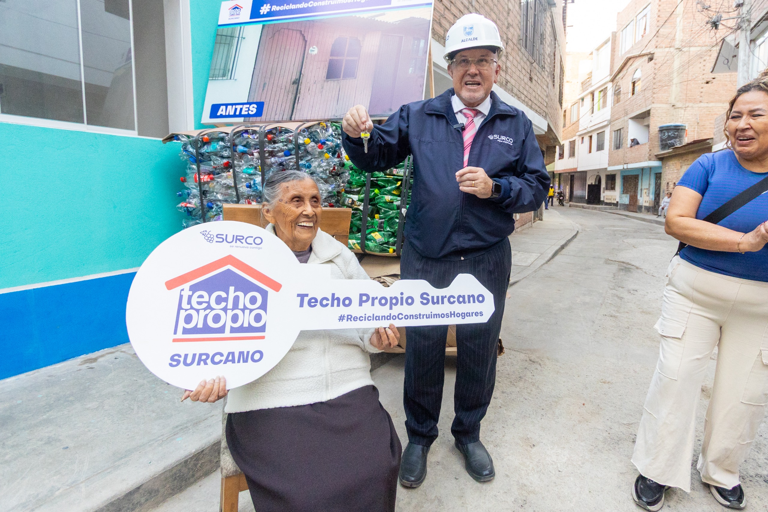 El sueño de la casa propia se hace realidad para más vecinos de Surco. El alcalde Carlos Bruce entregó las llaves de dos nuevas viviendas a sendas familias beneficiarias del programa Techo Propio Surcano, que construye casas dignas con recursos generados con el reciclaje de residuos sólidos.